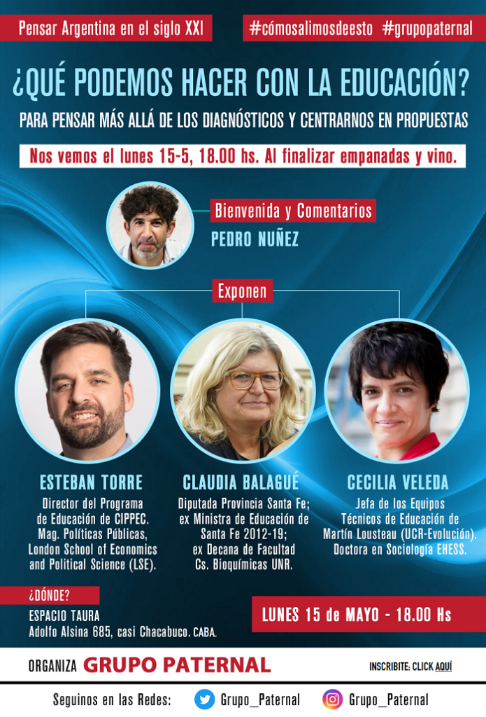 El lunes 15 de mayo, junto a Esteban Torre, Claudia Balagué y Cecilia Beleda, los tres con amplia trayectoria en educación formal e informal pudimos pensar nuevas propuestas de cara a los desafíos del Siglo XXI.