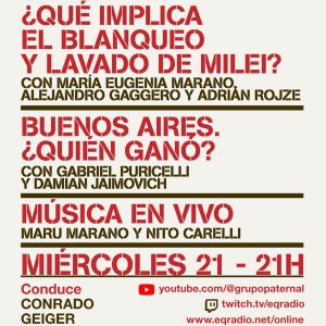 ¿Qué implica el blanqueo y el lavado de Milei? May 21, 2025 | Actividades, TodoXHacer Mirá el programa completo de #TodoXHacer del 21 de mayo: programa completo ¿Qué implica el blanqueo y lavado de Milei? – con María Eugenia Marano, Alejandro Gaggero y Adrián Rojze Buenos Aires ¿quién ganó? – con Gabriel Puricelli y Damián Jaimovich Música en vivo – con Maru Marano y Nito Carelli